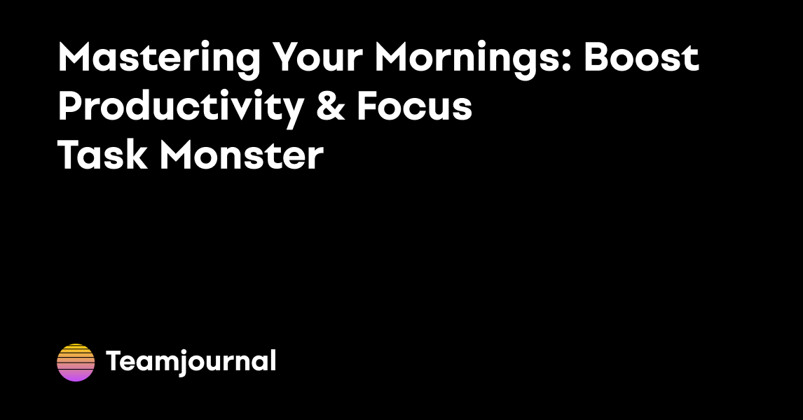 Let's be real: mornings can make or break your day. A scrambled start can throw off your whole vibe, while a smooth beginning can set you up for a win. That's exactly what Team Journal is here for—to turn your morning mess into a streamlined launchpad for crushing your daily goals. Here's how Team Journal can help you nail your mornings and amp up your productivity. Want to learn more about transforming chaos into clarity? Check out our guide on From Chaos to Clarity or dive deeper into Building High-Performance Teams.\nLet’s be real: mornings can make or break your day. A scrambled start can throw off your whole vibe, while a smooth beginning can set you up for a win. That's exactly what Team Journal is here for—to turn your morning mess into a streamlined launchpad for crushing your daily goals. Here’s how Team Journal can help you nail your mornings and amp up your productivity.